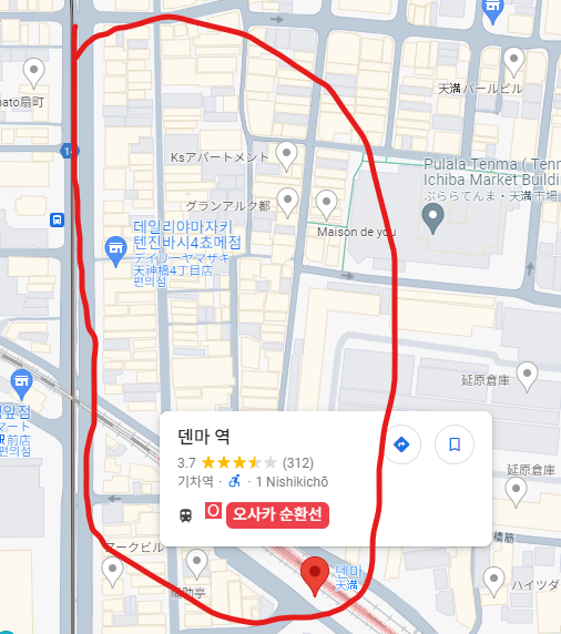 빠르게 결론부터 말씀드리면 오사카 우메다 근처의 덴마라는 지역입니다!